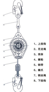 1、上掛鉤:上掛鉤掛在工作點(diǎn)上方的結(jié)構(gòu)架上;